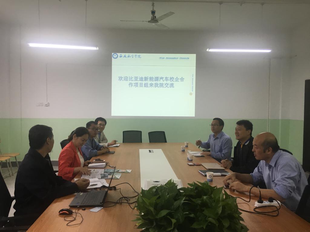 9月26日,比亚迪新能源汽车校企合作项目考察组王健技术总监等一行三人莅临beat365官网beat365英国官网网站,对与beat365官网展开新能源汽车校企合作项目进行商讨,beat365英国官网网站院长张耀虎、副院长杨亚萍参加了本次交流会,本次交流会在beat365英国官网网站会议室举行。
