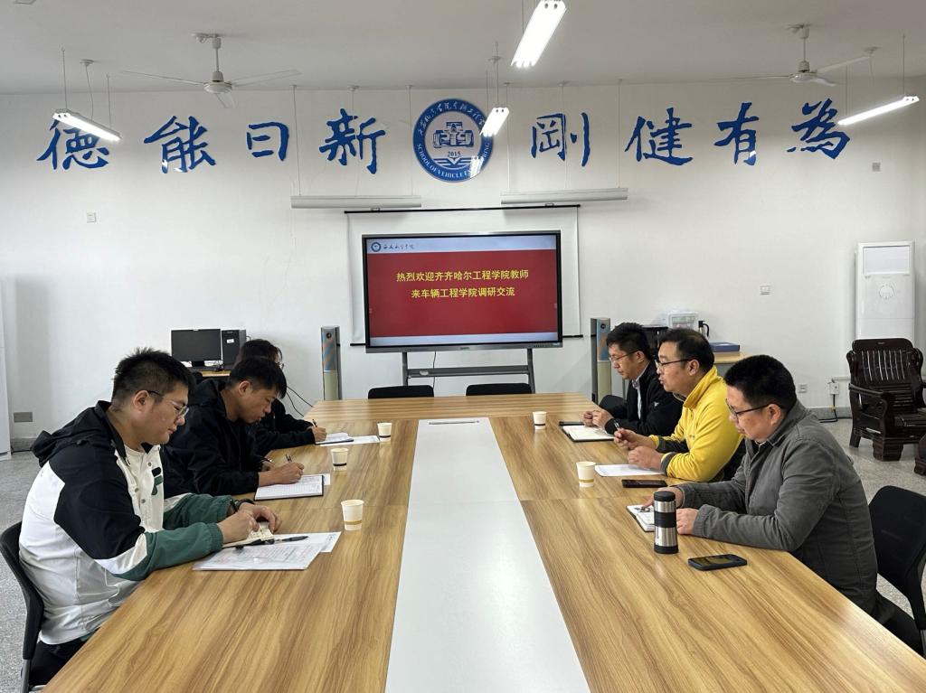 11月22日上午,黑龙江齐齐哈尔工程学院机电工程系袁双宏主任一行三人人赴我院交流调研。我院副院长赵坤、院长助理王兴路、新能源汽车工程教研室主任王鑫参加调研交流会。