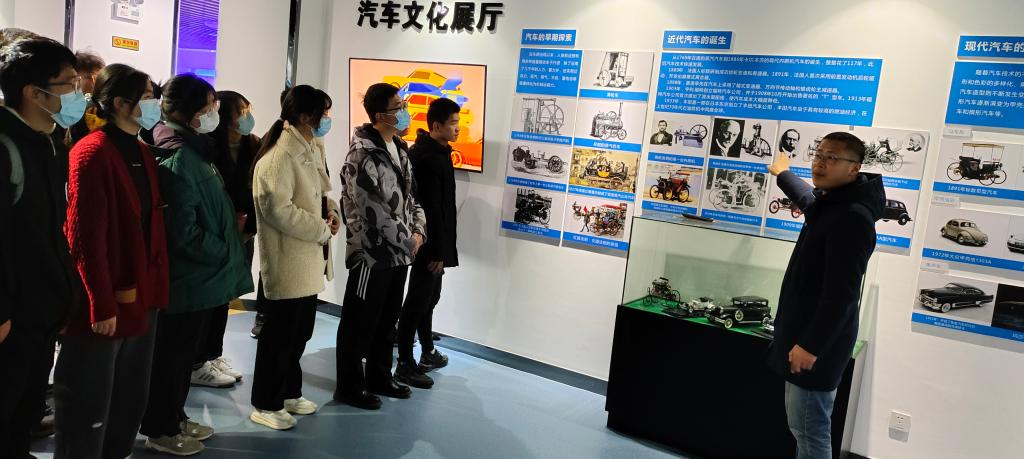 在整个参观展览过程中,汽车科技文化馆讲解员通过介绍馆内丰富的实物展品,讲解了汽车发展历史、汽车四大组成部件及相关附件、发动机及底盘结构、未来汽车发展、校企合作情况和学生学科竞赛作品。通过汽车科技文化馆的参观活动,激发了学生对汽车文化的兴趣及好奇。同学们通过观展对汽车行业的现状及发展,特别是我国汽车行业的发展有了进一步的认识。