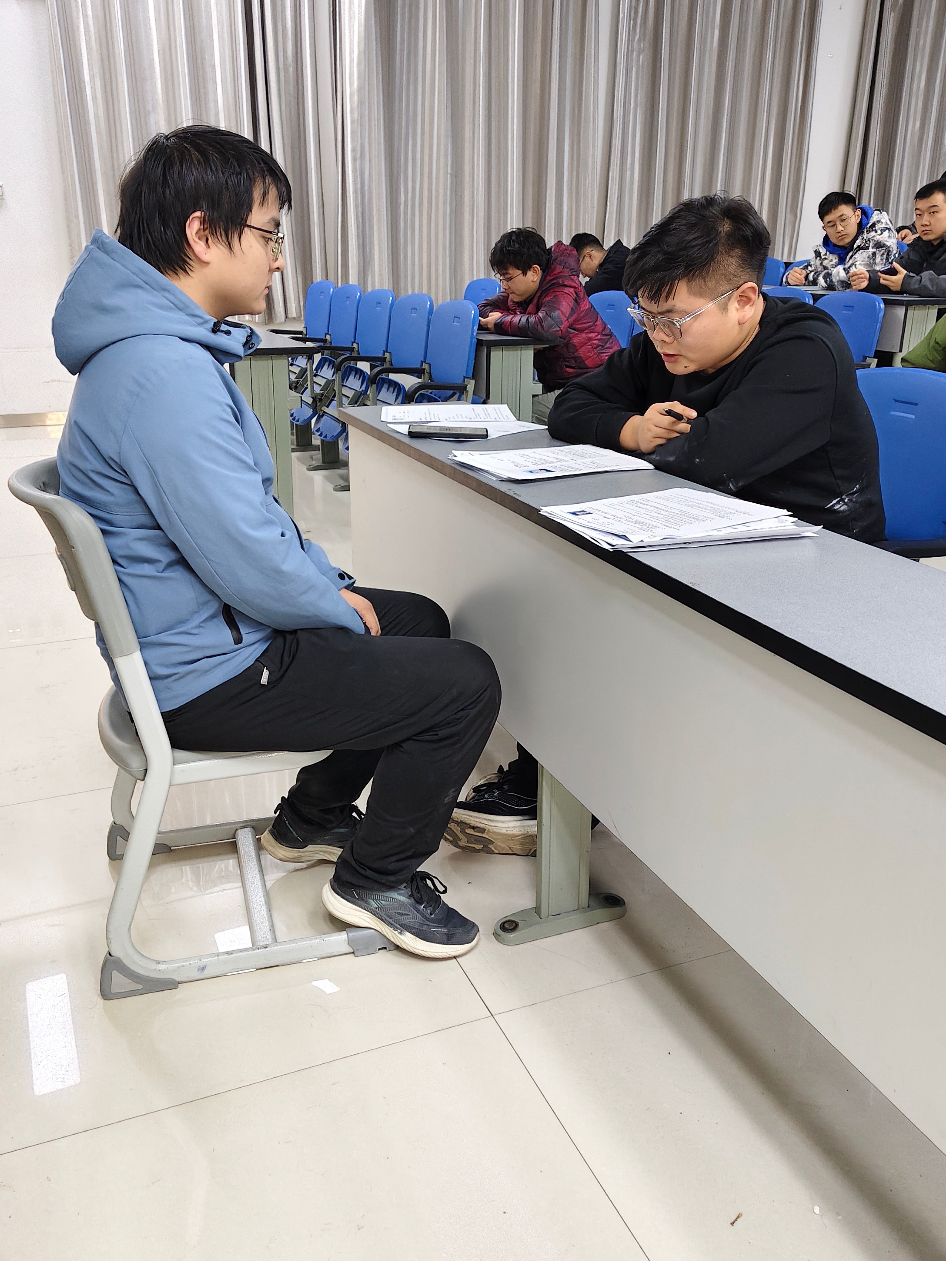 会上,吉利汽车集团校企合作西北区域经理王凯分别介绍了浙江临海基地、湖南湘潭基地的基本情况、薪资福利、招聘岗位、未来发展通道等,引导同学们根据自身专业特色、职业生涯规划等方面选择适合自己的岗位,精准定位。同学们认真聆听,与企业互动交流积极提问,会后递交简历并参加一对一面试。