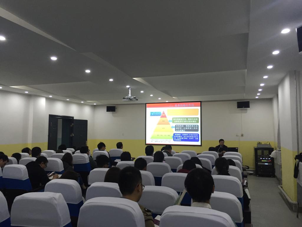 下午,beat365英国官网网站党总支在沣惠校区南教学楼一楼会议室召开党员大会,邀请宋文学副校长讲授“两学一做”学习教育专题党课。基建处、继续教育学院全体教师党员和beat365英国官网网站全体师生党员参加了本次党课学习。