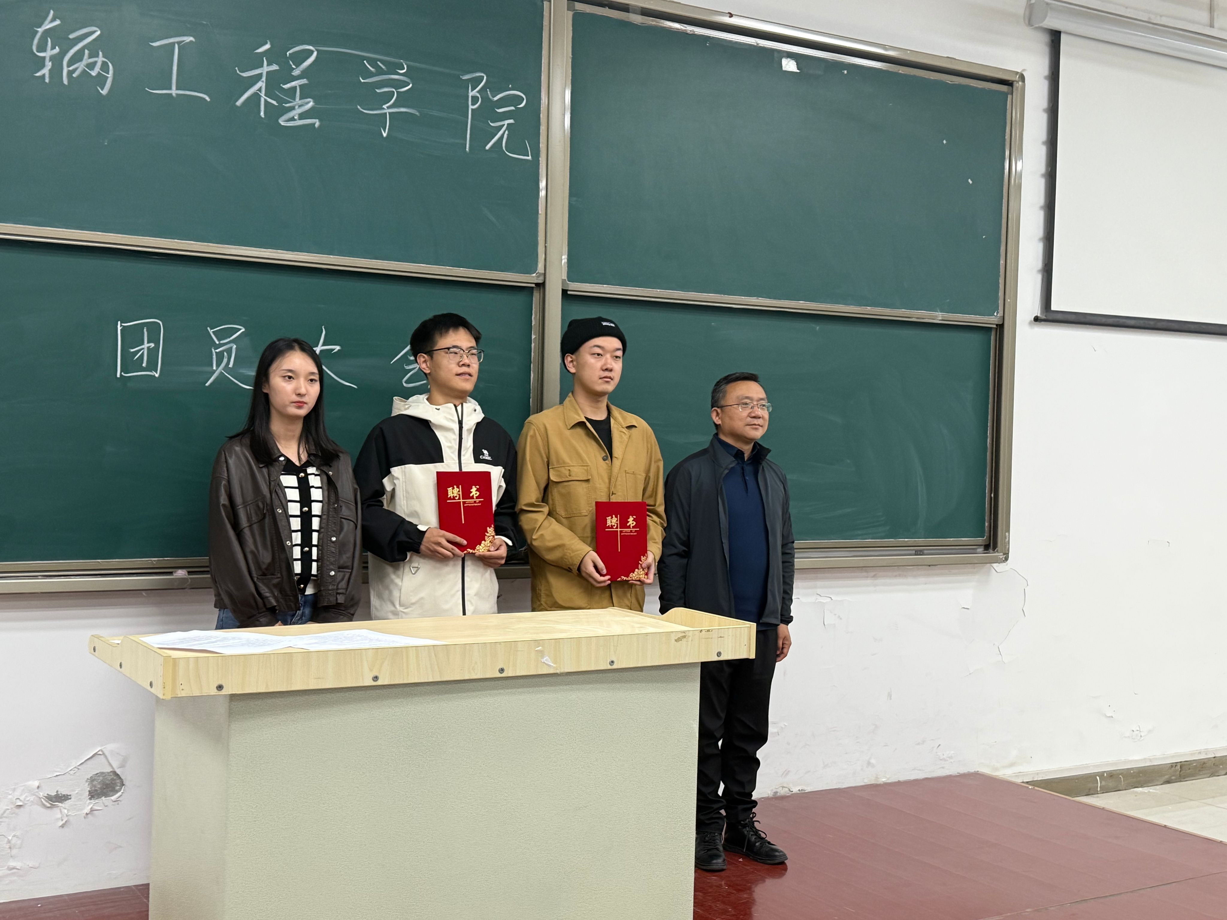 接下来由周小勇,任静为上届团学干部颁发聘书并合影留念,这不仅是对他们过去一年辛勤付出的肯定,更是对他们为学院做出突出贡献的表彰。