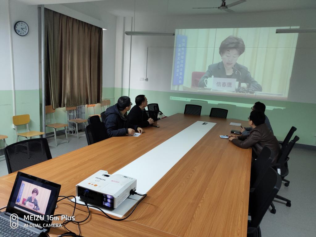 12月14日,学院党总支书记邓北川在全院大会上再次强调学习、宣传宪法的必要性和重要性,虽然前期各室加强了学习,但是还不够,要将这项活动坚持下去,实现常态化。随后,全院教职工再次观看了宪法宣传片,集中学习宪法新内容,通过深入学习,每一位教职工了解了国家根本制度和根本任务、国体和政体基本内容,以及宪法规定的公民基本权利和义务等内容。