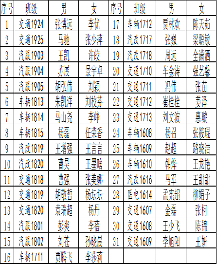 各班心理委员:
