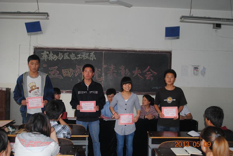 2013年5月9日,我院车辆与医电工程系召开了“五四评优”表彰大会。系团总支书记仇建华、辅导员徐翠云、系团干部及各团总支优秀学生代表等100余人参加了会议。