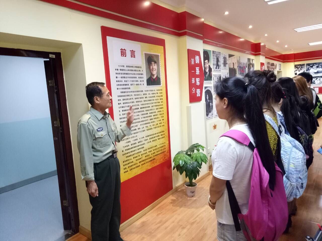 参观过程中,在我院退休职工“双拥模范”李新建老师的深情讲解下,全体同学深深地感受到了一位退休教师的拥军梦。在李新建老师看来,丰富部队的文化生活是自己的责任。16年来,李新建成立的艺术团走遍了祖国十多个省份的150多座基层军营,行程达35万公里,为部队培养了一大批文艺骨干。李新建的亲身经历让大家感受到一名老人对军民鱼水情的完美诠释。最后,李新建老师鼓励同学们:要不断加强党性锻炼,努力提升自身素质,发扬拥政爱民的优良传统。