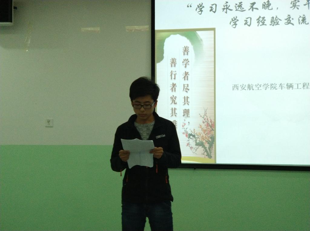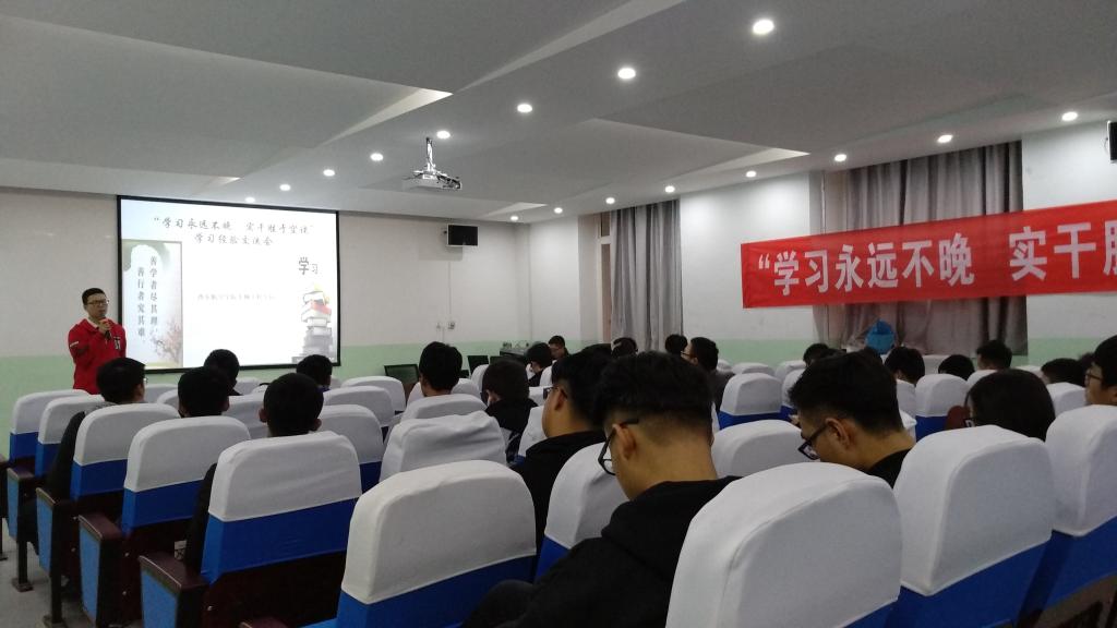 beat365英国官网网站于11月16日16:00在南108开展“学习永不晚,实干胜空谈”学习经验交流会。各年级学生代表参加了本次交流会。会议由学生管理科科长罗伟主持。