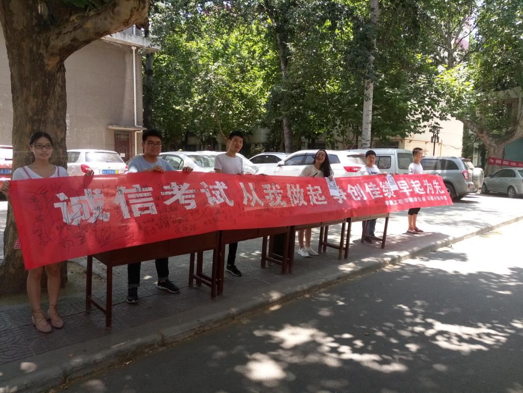 此次活动在相关主题班会教育基础上旨在提醒学生积极备考,宣传诚信考试,让广大同学从思想上认识到诚信的重要性,形成诚信考试、诚信做人的良好氛围。让广大同学认识到考试是学习的检阅,考试失败,同学们还有机会,但失信则是人品的缺陷。同时倡议同学们抓紧一切时间,学好知识技能,在考试中要端正态度、严肃考纪、认真审题、谨慎作答,实现成绩和人格的双丰收,以优异成绩回报父母与社会。活动中,同学们在印有“端正考风、诚信考试,从我做起”的横幅上郑重地签上了自己的名字,写下了自己的承诺。