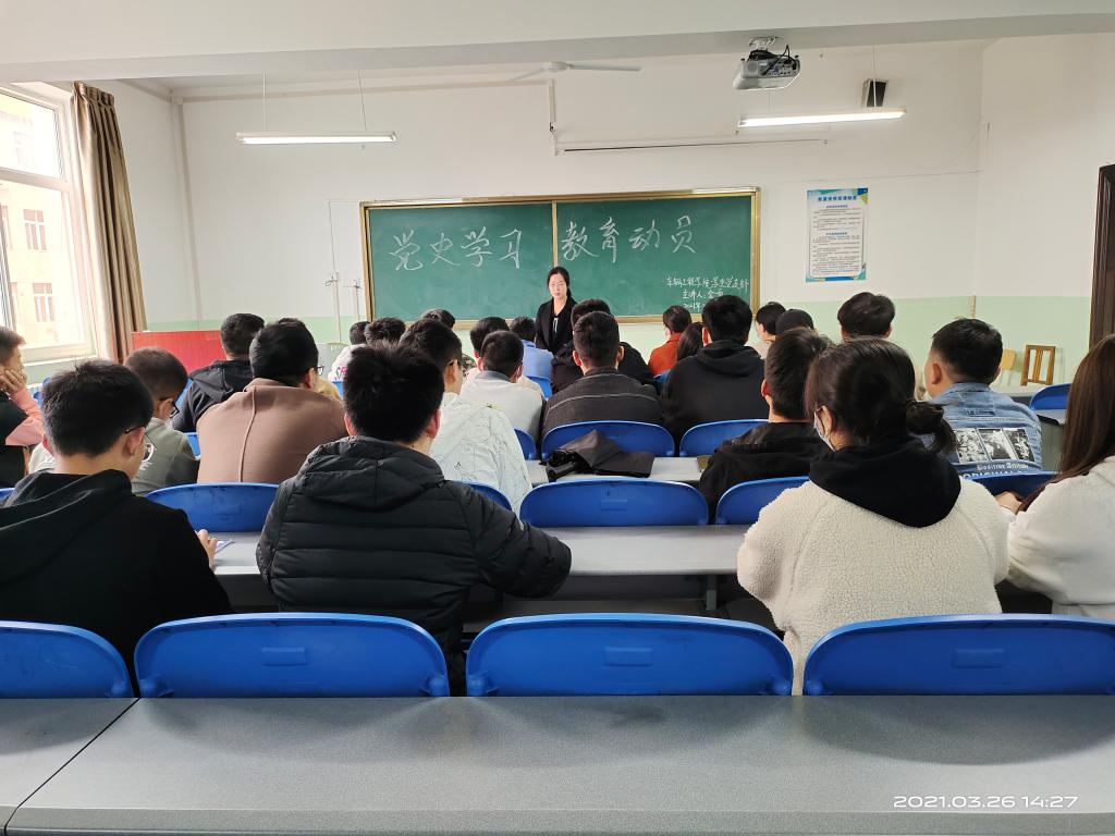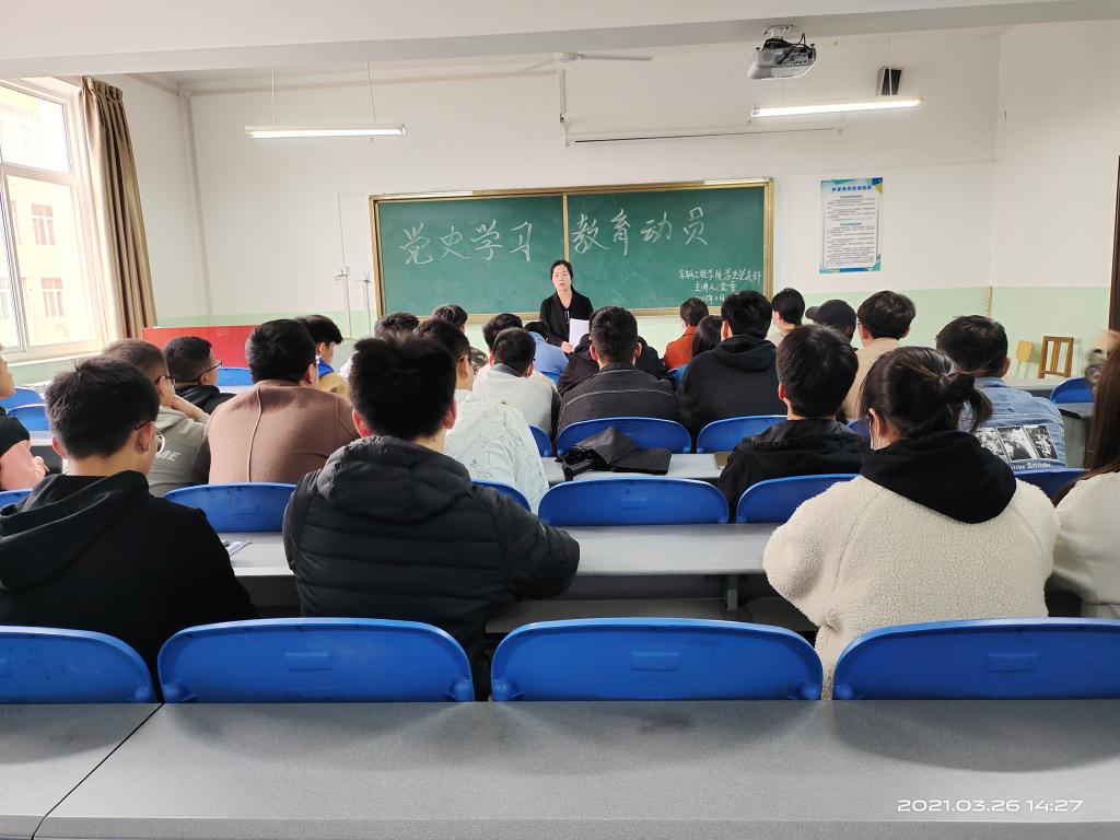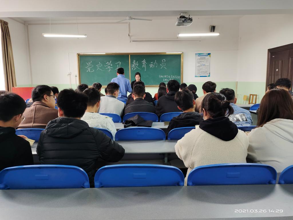为了深入贯彻落实《中共中央关于在全党开展党史学习教育的通知》及省、市、校党史教育动员大会精神,3月26日下午beat365英国官网网站学生党支部在北楼333,开展了向建党一百周年献礼之党史学习教育动员大会暨书记讲党课活动,由学生第一党支部书记金雪主持,全体学生党员参加。