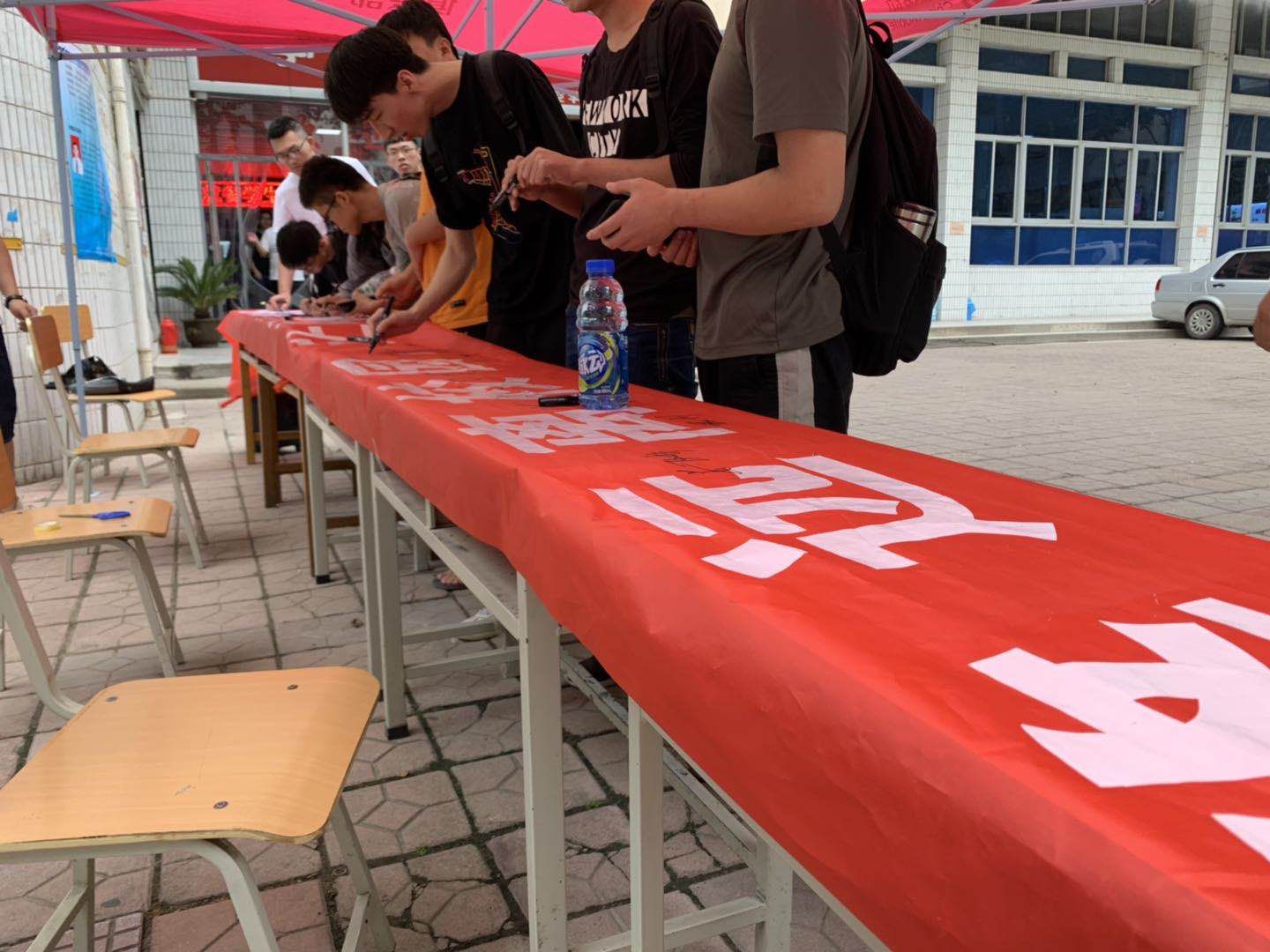 为强化考场纪律,营造一个干净考场环境。beat365英国官网网站于6月24日中午12点在一食堂门口举行以“让舞弊远离校园,让诚信常驻心中”为主题的诚信考试签名活动。