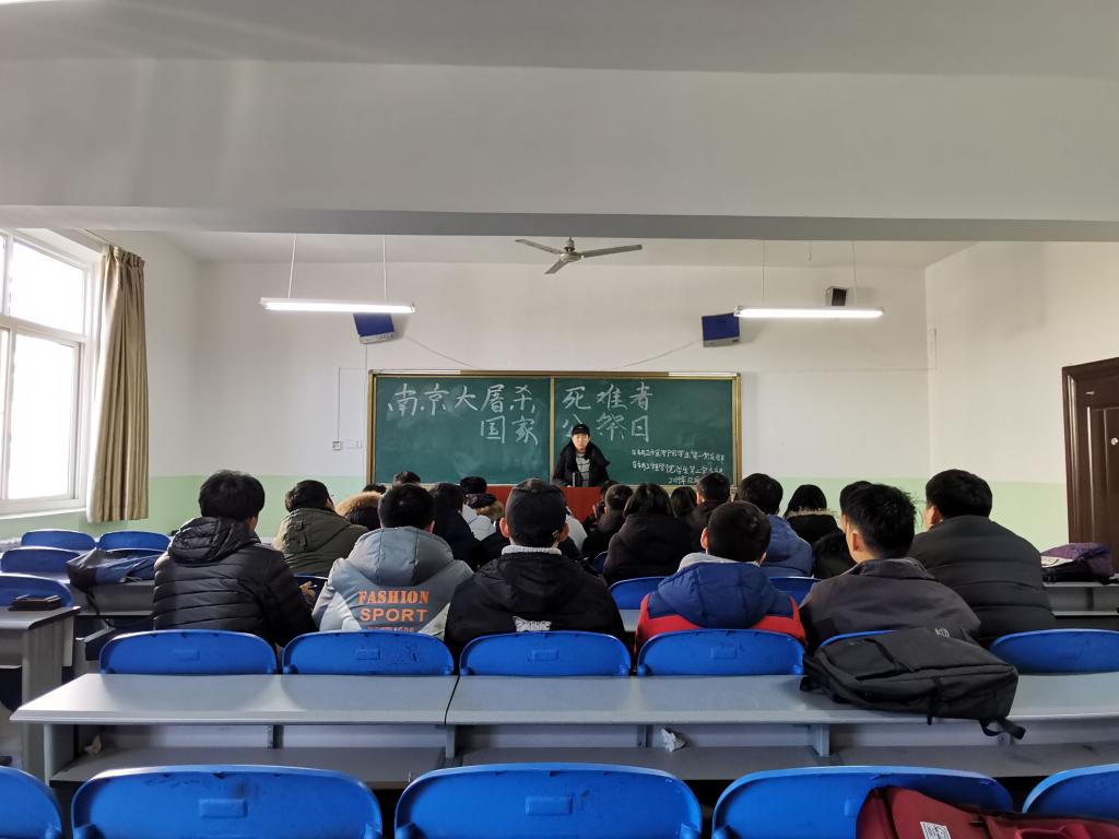 2019年12月27日,beat365英国官网网站学生第一、二党支部组织全体党员在北楼333开展以“南京大屠杀死难者国家公祭日”为主题的学习教育,会议由学生第二党支部组织委员于思月主持。