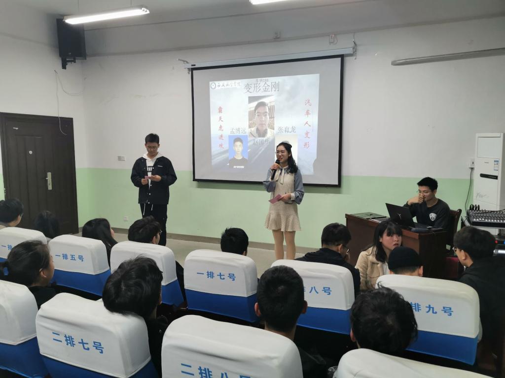 参赛队伍由大一年级各班级代表队组成,每队四人,共八个队伍,分为三个环节,分为初赛,复活赛和决赛。在第一环节初赛中,根据各支队伍在手机上统一答题的成绩,评选出晋级的四支队伍。由第一阶段淘汰的四支队伍参加复活赛,由淘汰的四支队伍参。本环节主要识别汽车标识,看图片猜车名,采用抢答的方式,得分高的一支队伍将与晋级的四支队伍参与第三环节比赛。之后的互动环节是两人一组的“你画我猜”游戏,台下观众踊跃参与。经过最激动人心的决赛环节,维修192班获得了此次竞赛的冠军。