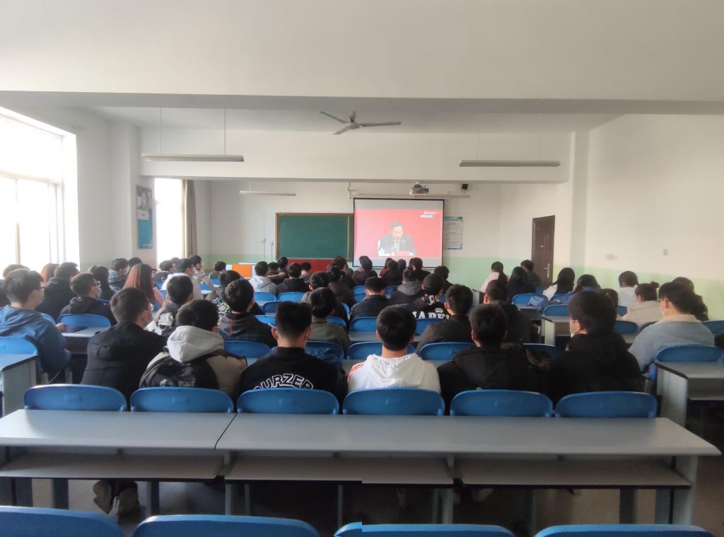 11月12日上午10点beat365英国官网网站在北333组织学生党员集中观看了中共中央举行的介绍党的十九届六中全会精神的新闻发布会。按照防疫要求,全员全程佩戴口罩。