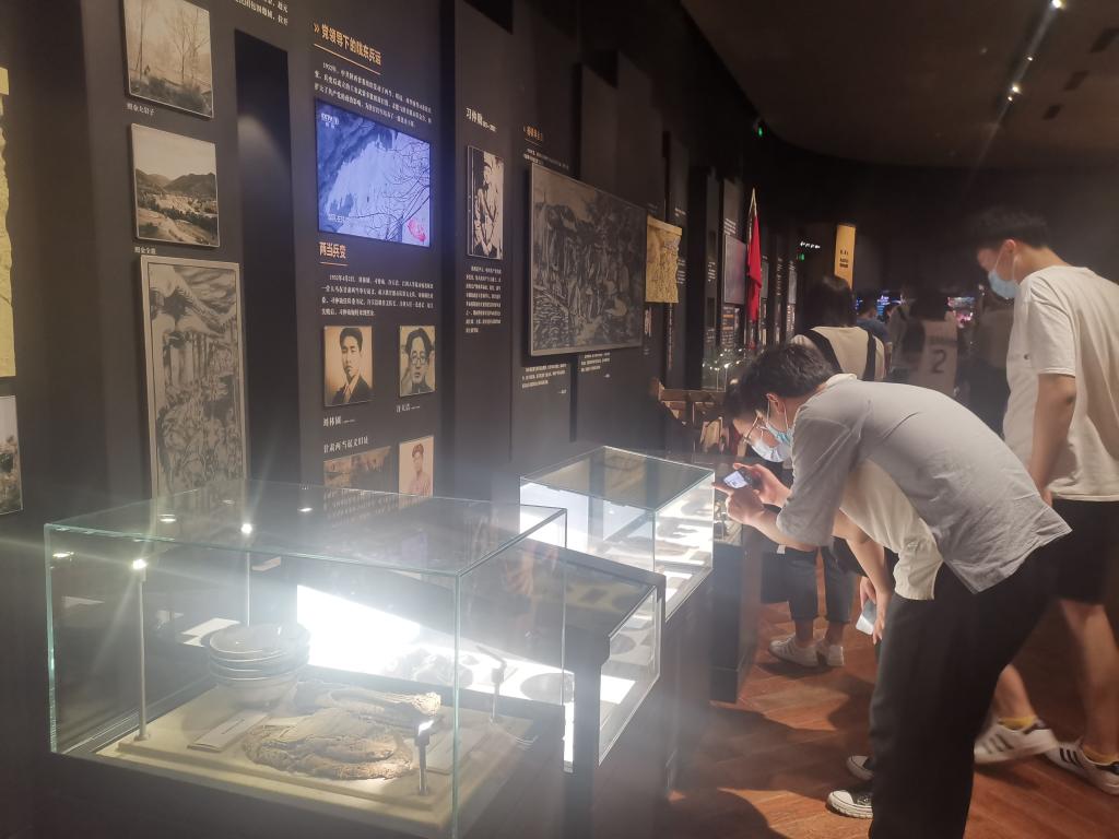 走入纪念馆内,序厅以党徽、党旗为背景,铜雕上的人物肖像、军旗错落有致。序厅正中纪念台跳动的火光,寓意着红色火种生生不息。展柜中陈列的大刀、长矛、军号、马灯等物件虽然已锈迹斑斑,但这些都是当年在照金的武装斗争中军民使用过的;军装、草鞋等物品,让大家深切感受到了革命先辈在艰苦条件下矢志奋斗的革命精神,他们用壮烈的牺牲、凛然的大义传递着中华民族信仰的力量,为救国图强和振兴中华进行着不懈的英勇斗争。他们才是党的伟大初心忠诚坚守者和英勇实践者。