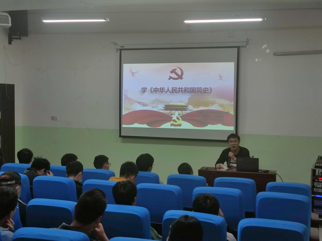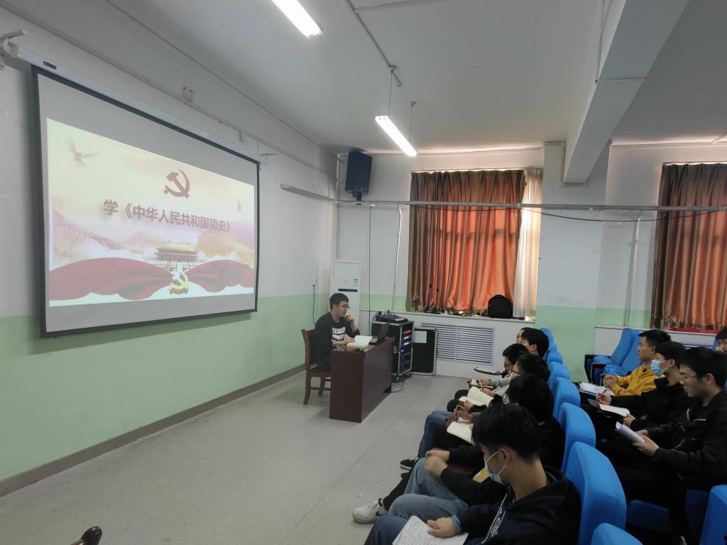 刘雨辰以《中华人民共和国简史》为专题给同学们讲授党课,带领党员们回顾了1949年到2021年之间发生的重大事件,重点学习了新中国成立、社会主义基本制度的确立、社会主义建设的艰辛探索和曲折发展、改革开放与中国特色社会主义的开创、建立社会主义市场经济体制、把中国特色社会主义全面推向21世纪等。