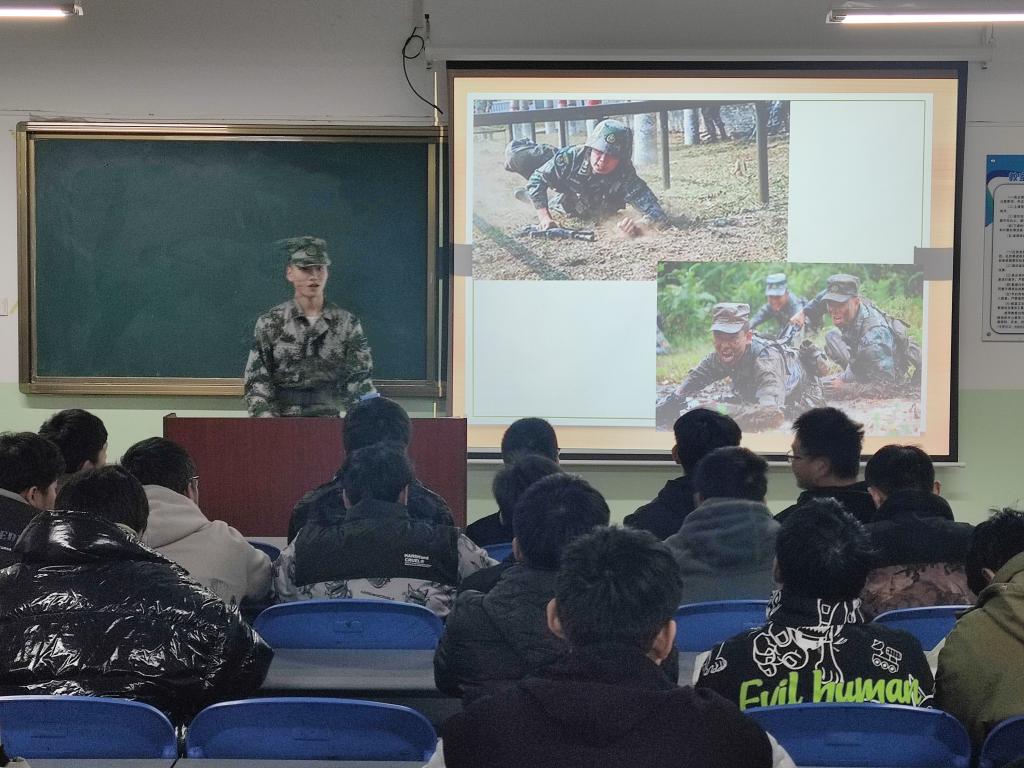 张轲曾服役于战略支援部队,他结合自身在部队经历,谈了自己在军旅生涯中的所想所得,也谈及了回归校园后的学习生活情况、面临的困惑和实际困难。他表示参军入伍是自己人生经历中的宝贵财富,一定会退伍不褪色,继续发扬军队的优良传统和作风,做好先锋模范带头作用,继续履行“强国有我”的使命担当。同时,他也呼吁大家“用两年时间来一场军营初体验,用一身戎装换来一次军旅芳华”。