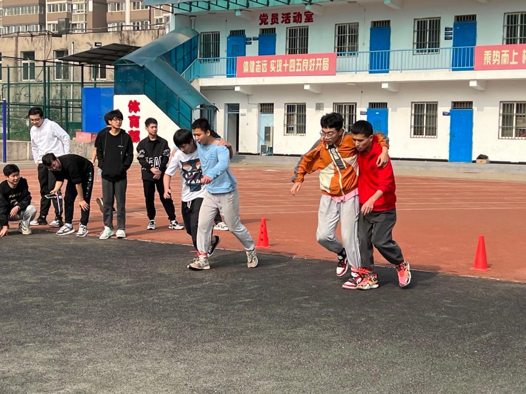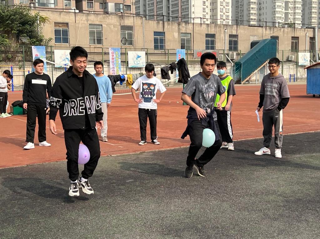 本次趣味运动会共设置“趣味拔河赛”、“颗粒归仓”、“五人绑腿接力赛”、“双腿夹球接力赛”及“萝卜蹲”五个项目。各个项目轻松有趣,不仅可以锻炼大家动手动脑的能力,更能锻炼大家团结协作的精神,每一个团队都热情高涨。加油声、欢呼声、笑语声此起彼伏,同学们热情又充满活力,现场的气氛十分一片火热。