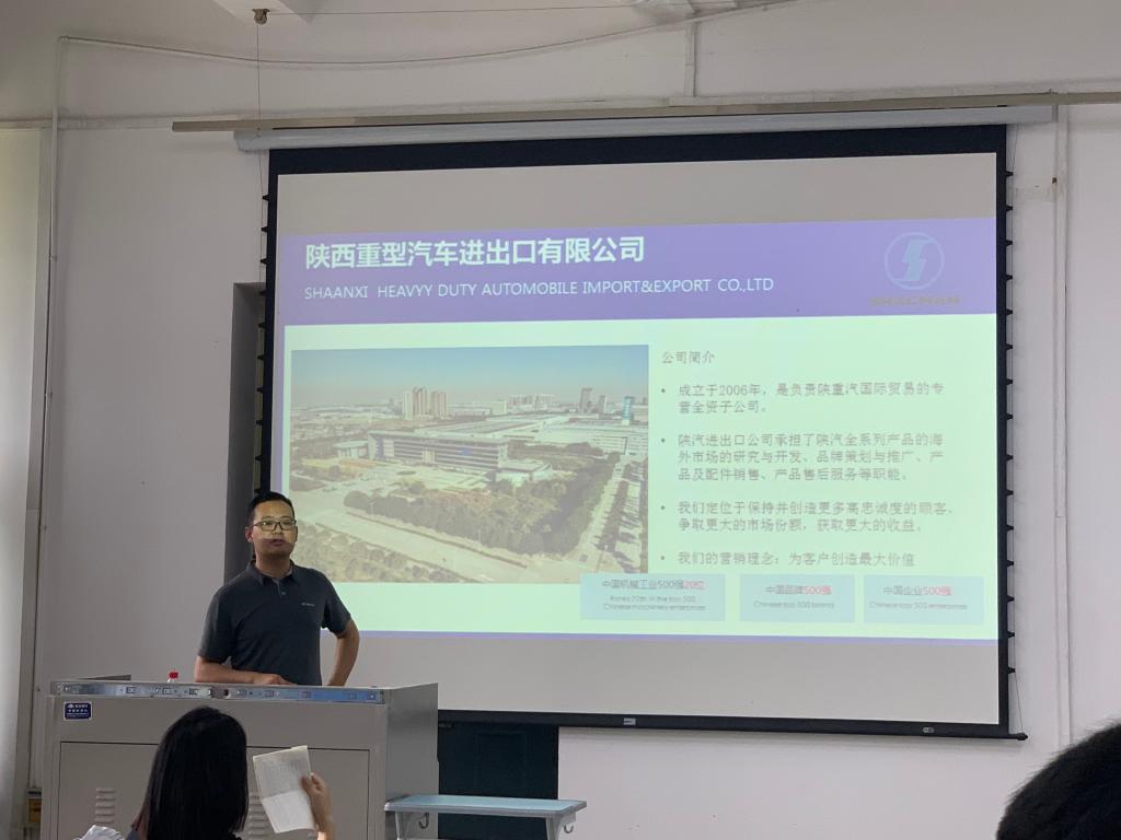 陕西重型汽车进出口有限公司(以下简称陕汽进出口公司)成立于2006年,是由中国500强企业陕西重型汽车有限公司出资组建,负责国际贸易的专营全资子公司。本次宣讲会由陕汽进出口公司综合管理干部部长景航主持。会上,景部长为同学们讲述了公司的企业文化、产品概况、薪酬福利、后勤保障、津贴福利等。同学们就自己关心的问题与景部长进行了详细交流,随后开展了现场面试,招聘会圆满结束。