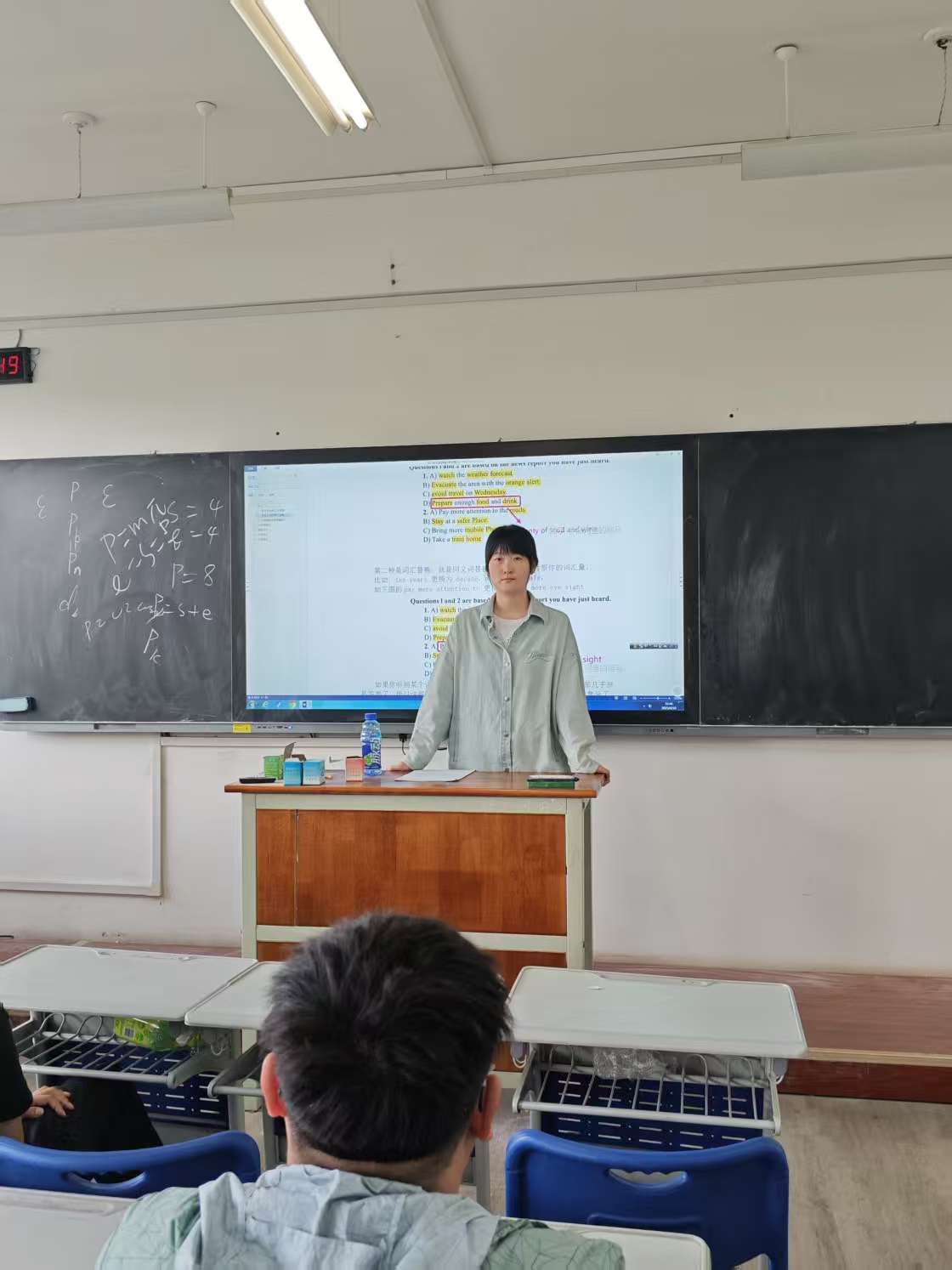 李文真博士从英语四六级听力考试的三大原则、考前十天的听力准备、精细阅读答题技巧等方面进行了详细的讲述,并系统讲解了中英翻译和完型填空等题型的备考策略。针对听力题型,李文真老师重点讲解了听力惯性、答题步骤和答题原则等答题技巧;针对阅读题型,李老师选取多篇真题原文带领同学们学习使用关键词寻找法、同义词替换法等答题方法。现场气氛热烈,学生踊跃参与。