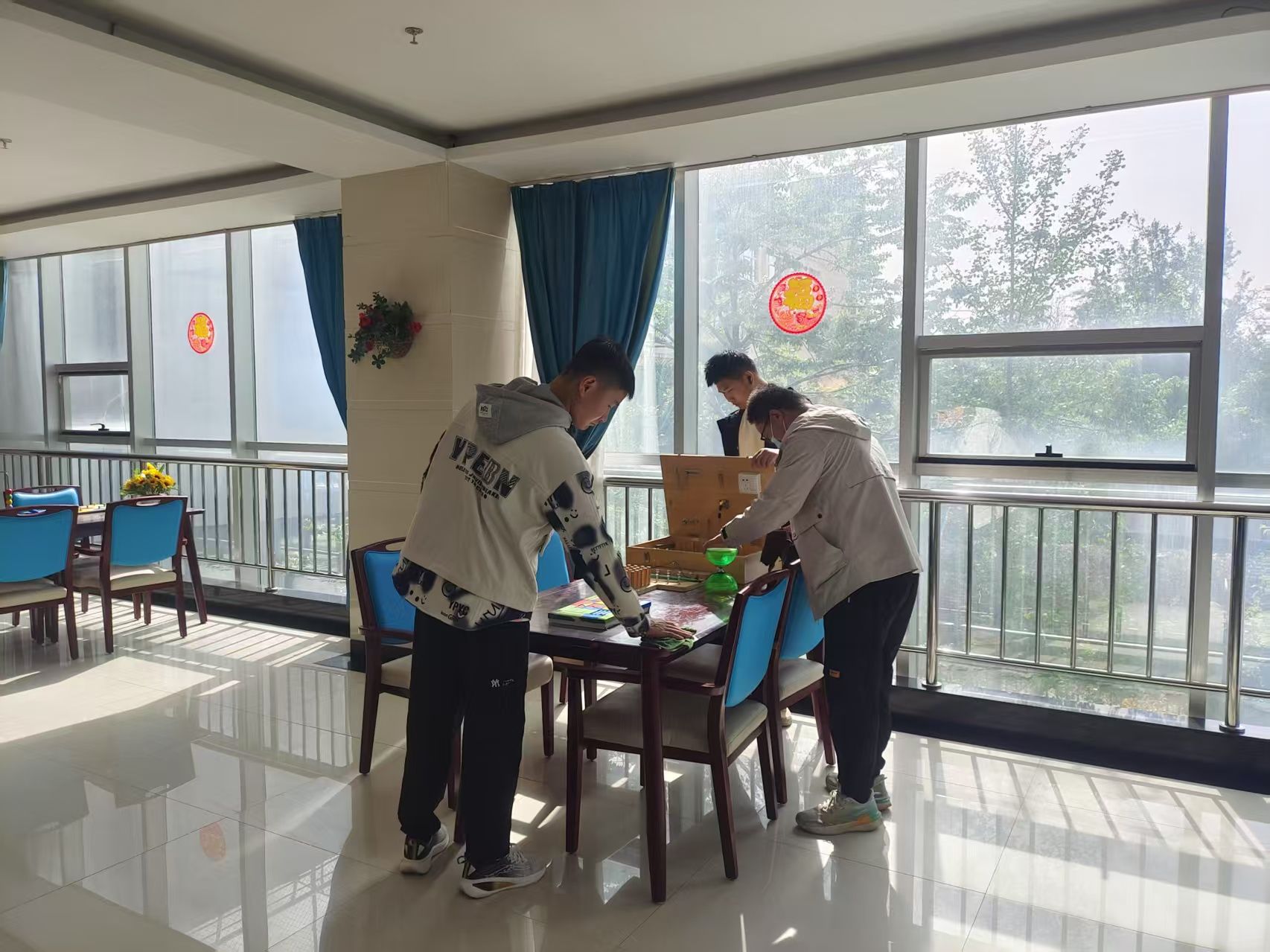 活动当天,25名志愿者一早便抵达敬老院,在工作人员指引下,志愿者们分工合作,一部分对敬老院的公共活动区、走廊及庭院进行了全面清扫,为老人们打造了一个干净整洁的生活环境。另一部分陪伴老人,倾听他们的故事、分享生活中的趣事,为老人们提供情感支持和心灵慰藉。