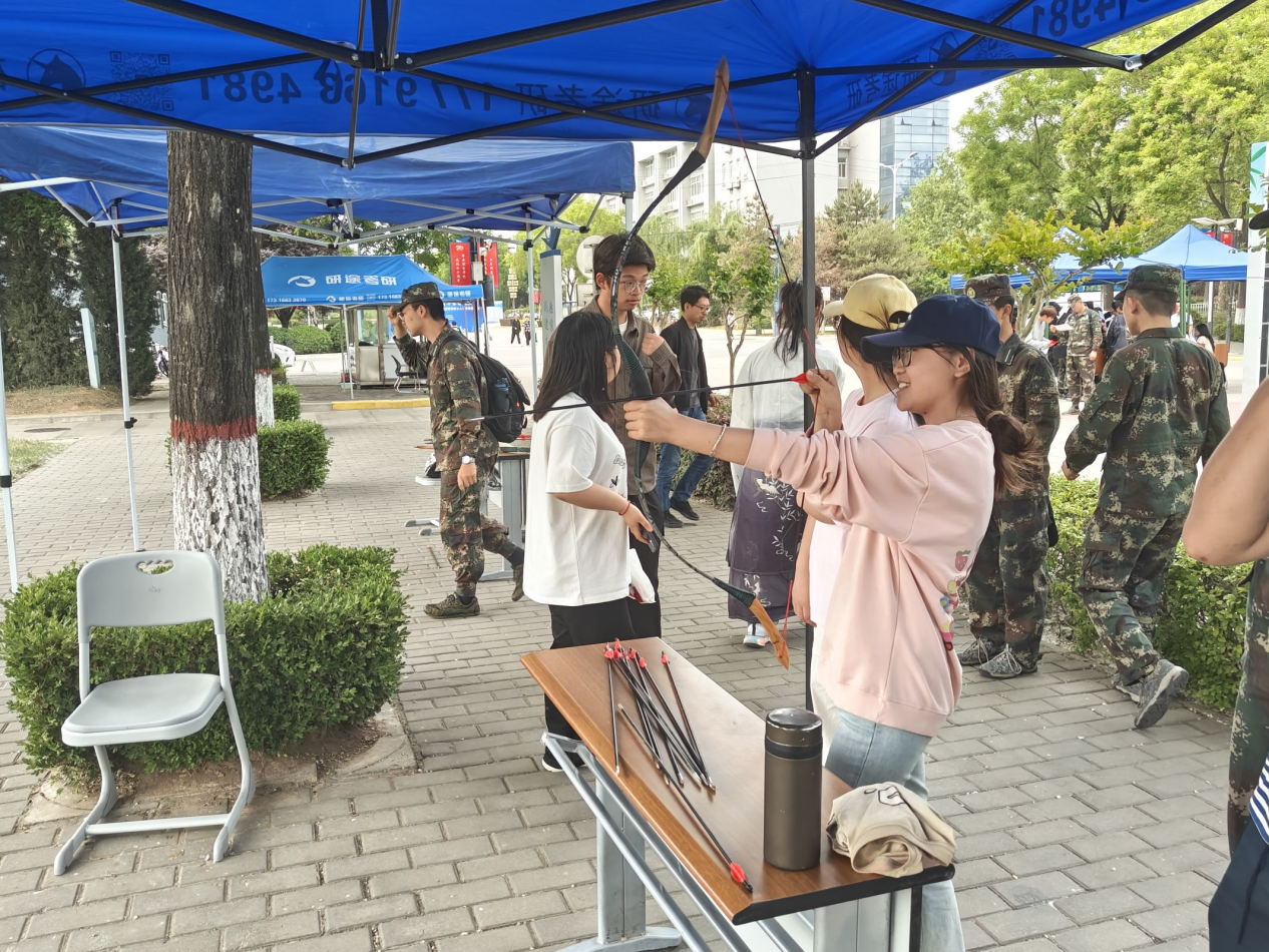 电子工程学院将古代君子六艺与现代体育精神结合,打造“文武双全”体验区。在古韵射箭区,同学们挽弓搭箭,体验“百步穿杨”的豪情;投壶区则笑声不断,竹箭入壶的清脆声响与欢呼声交织成曲。