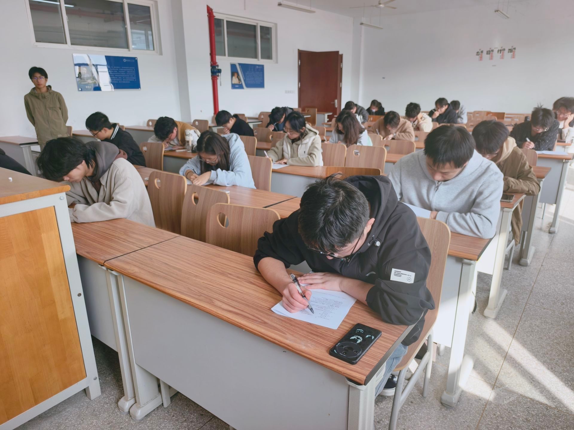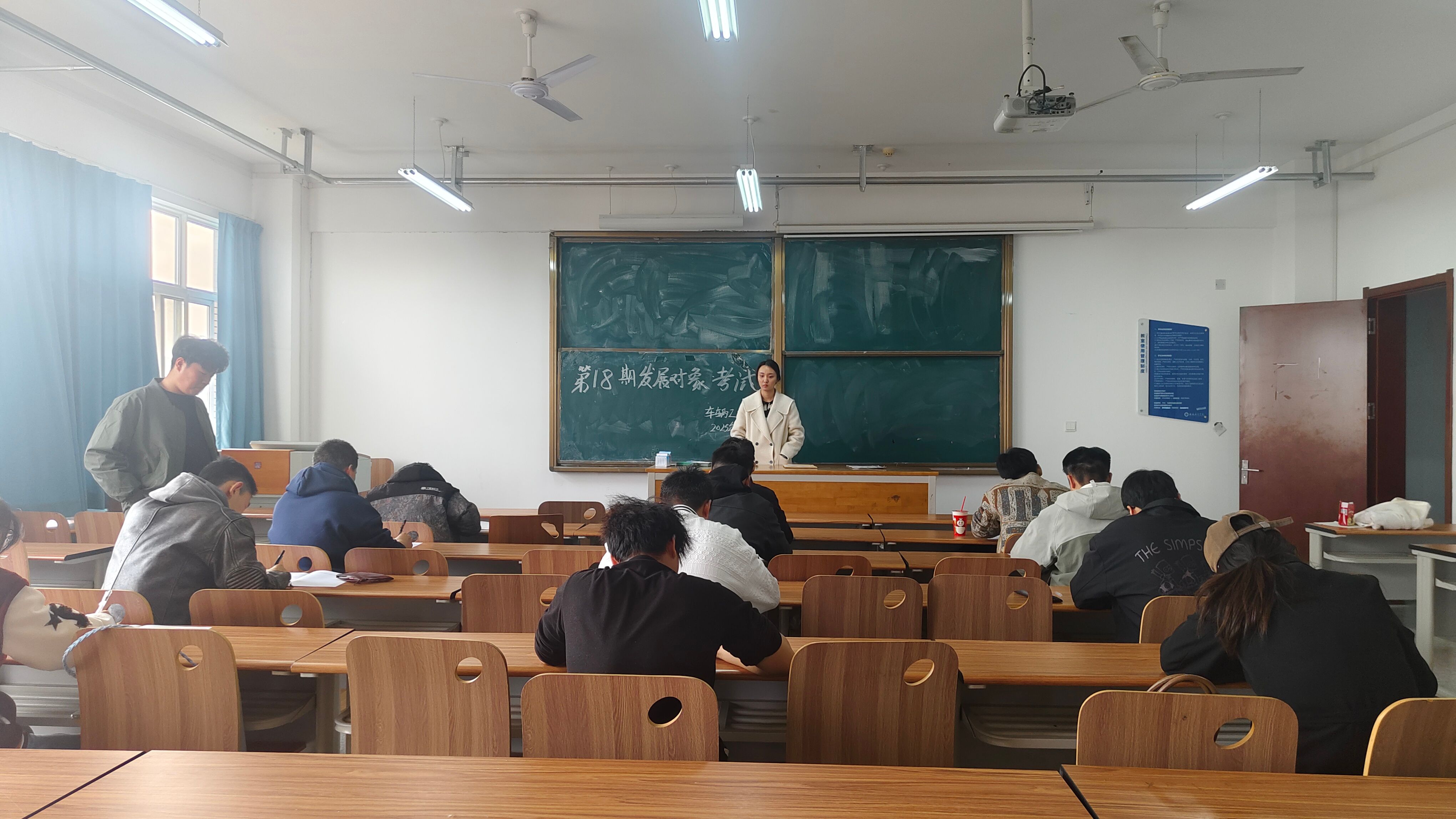 本次考试采用闭卷形式,分两场进行,每场考试时长60分钟,共有25名入党积极分子和12名入党发展对象参加考试,由学工办副主任李艺、团总支书记任静共同担任监考。考试内容涵盖党章党规、党史及党的二十届四中全会关于党的建设新要求和习近平新时代中国特色社会主义思想的核心要义等。考试过程中,学员们态度严谨,全程严格遵守考场纪律,秩序井然。