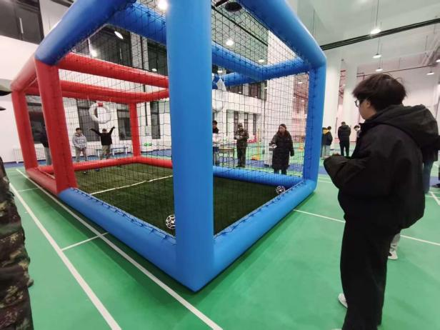 无人机足球是一项融合无人机技术与足球运动特点的科技体育项目,要求选手在立体空间内操控装有保护罩的无人机完成传递、拦截与射门等动作,对操作能力、反应速度及团队配合均有较高要求。