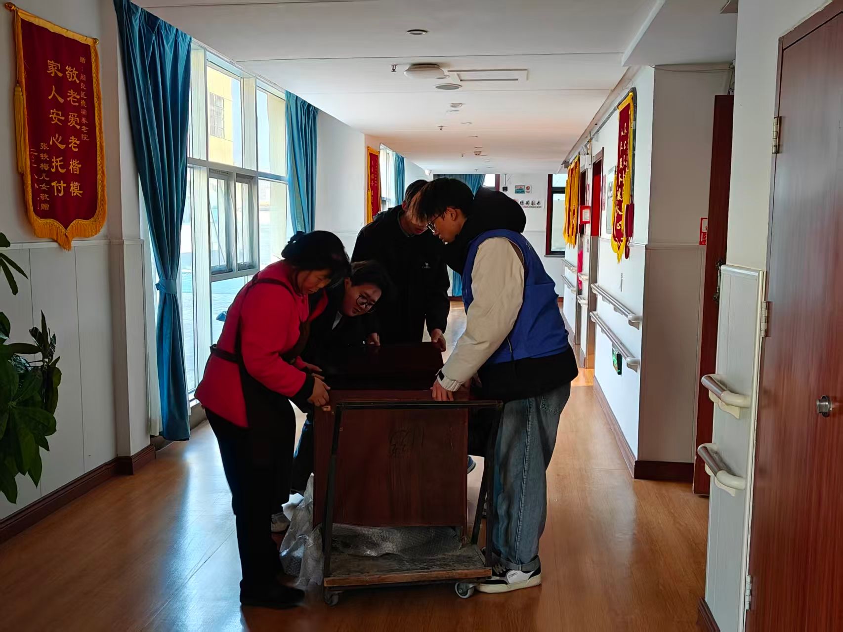 为弘扬尊老敬老的传统美德,引导学生践行志愿服务精神,12月28日,beat365英国官网网站志愿者中队组织学院25名学生志愿者走进阎良区德瑞敬老院,开展“以青春之名,暖夕阳岁月”为主题的志愿服务活动。