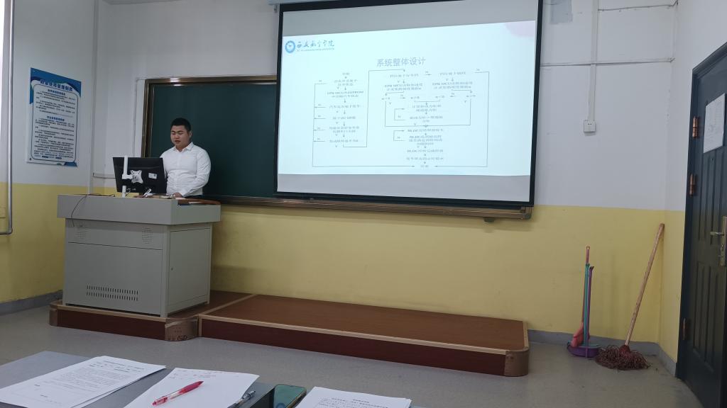 答辩过程分为两个环节,首先学生阐述各自毕业设计(论文)的研究背景、目的、内容、方法及研究成果,之后答辩组成员针对论文和答辩内容进行提问,学生逐一回答。最后老师就学生论文的规范性、完整性、创新性和工作量等进行评价。答辩过程井然有序,大部分学生准备充分,回答问题条理清晰,实物制作功能完整,充分展示了对基础理论与专业知识的综合应用能力。对于部分存在问题的论文,答辩小组也给出了切实有效的修改建议和指导。