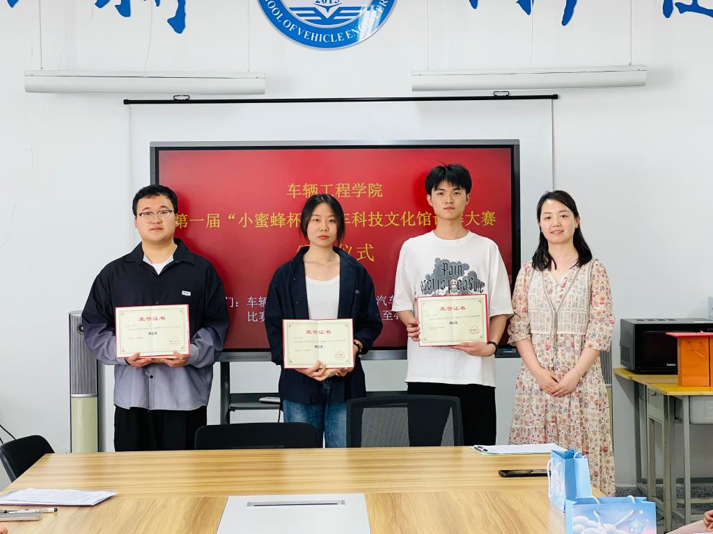2024年4月12日下午,beat365英国官网网站第一届“小蜜蜂杯”汽车科技文化馆讲解大赛决赛圆满完成,beat365英国官网网站院长赵炜华出席颁奖仪式,副院长赵坤及实验室4名教师参与评审。