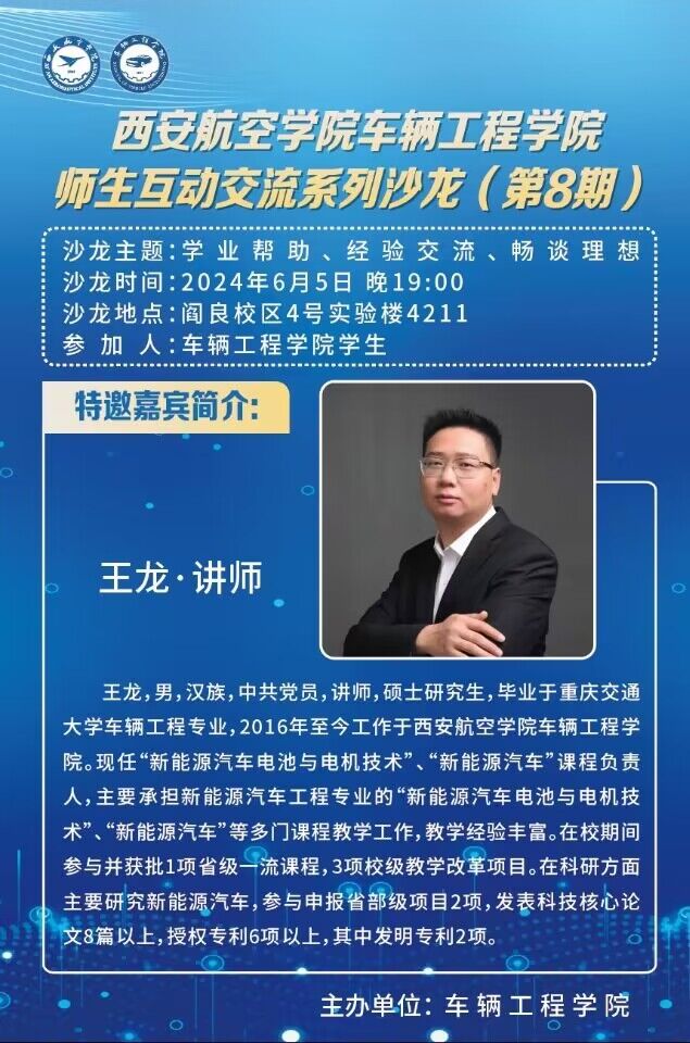 6月5日,beat365英国官网网站精心策划的“师生互动交流沙龙”第二季第八期在阎良校区beat365英国官网网站会议室圆满举行。本期沙龙以“学业帮助、经验交流、畅谈理想”为主题,吸引了三十余位来自不同年级和专业的学生热情参与。主讲嘉宾王龙老师与学生们共同探讨了大学生涯中的学业规划、考研策略以及就业前景,为在场的每一位同学提供了宝贵的指导和建议。