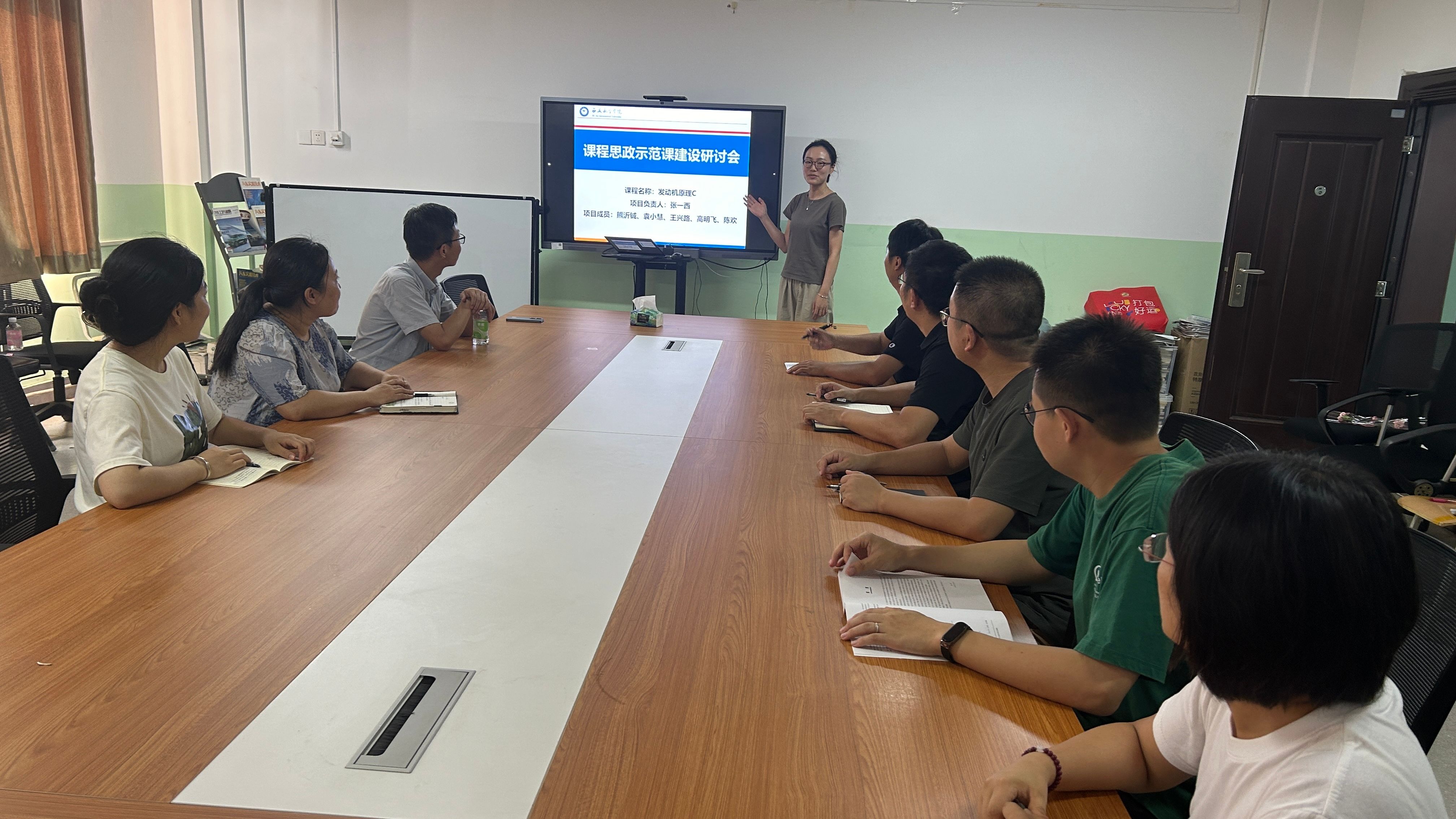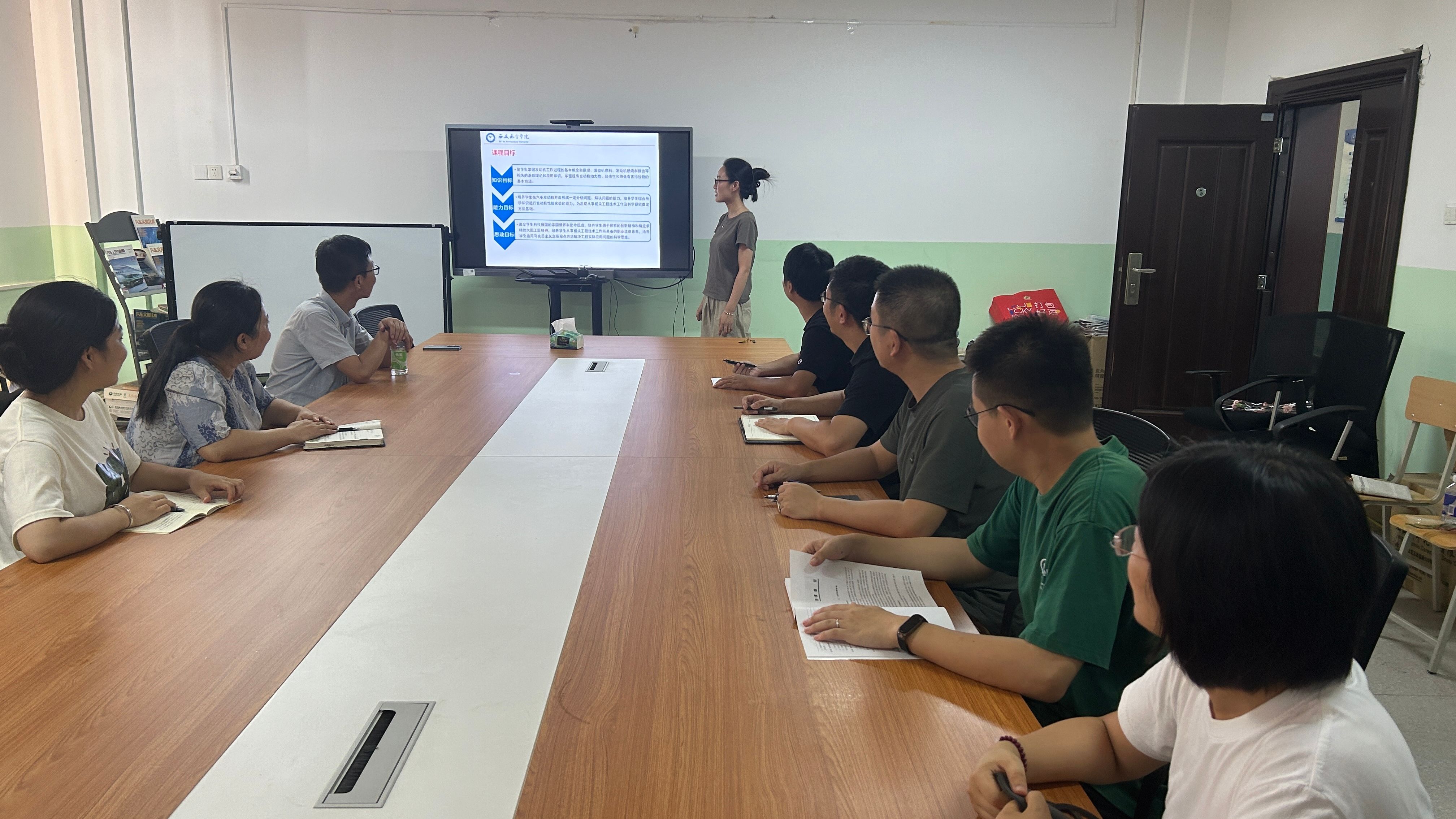 会上,项目负责人张一西对《发动机原理C》课程思政示范课建设项目的建设思路、建设情况、存在的问题及后期规划进行了汇报。项目组成员对各自负责内容的完成情况进行了汇报,各位老师针对课程内容设置、思政元素挖掘、思政元素的融入点和融入方式、教学设计、教学方法、评价体系等展开了激烈讨论。大家一致认为,如何实现课程思政元素自然融入专业知识传授过程中是建设的关键,不能简单的将思政元素和专业知识进行叠加,而是要在教学内容、教学方法和教学手段等方面进行全面改革,将思政元素有机的融入到课程中,才能实现“知识、能力、素质”三位一体的人才培养目标。
