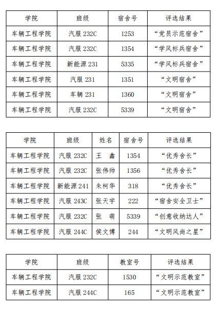 根据《关于开展2025年度“两创一做”文明评比工作的通知》(西航学字〔2025〕14号)文件精神,经过为期两个月的实地检查,评比申报。结合教室、宿舍日常环境卫生考核和学生学习成绩等综合考评,经学院研究决定,现将评选结果公示如下: