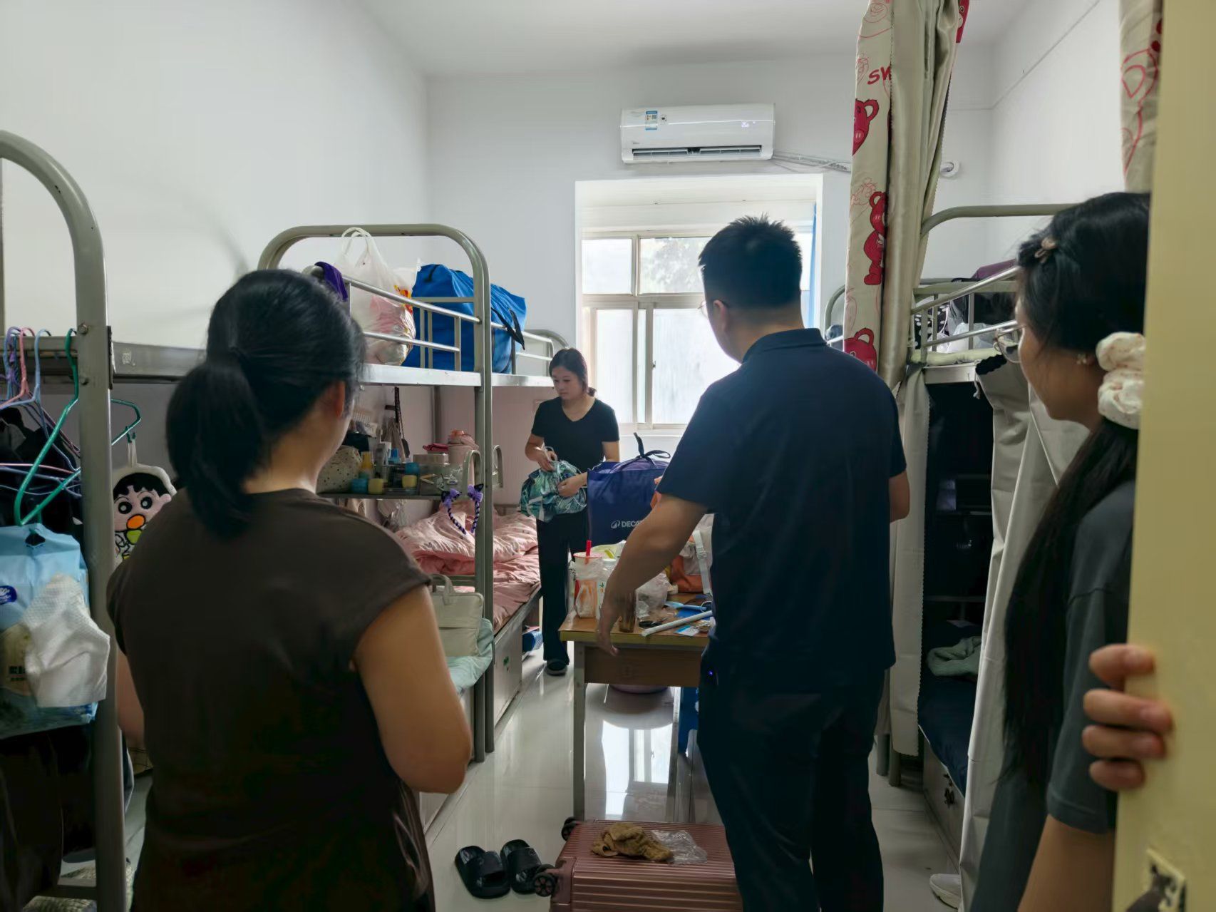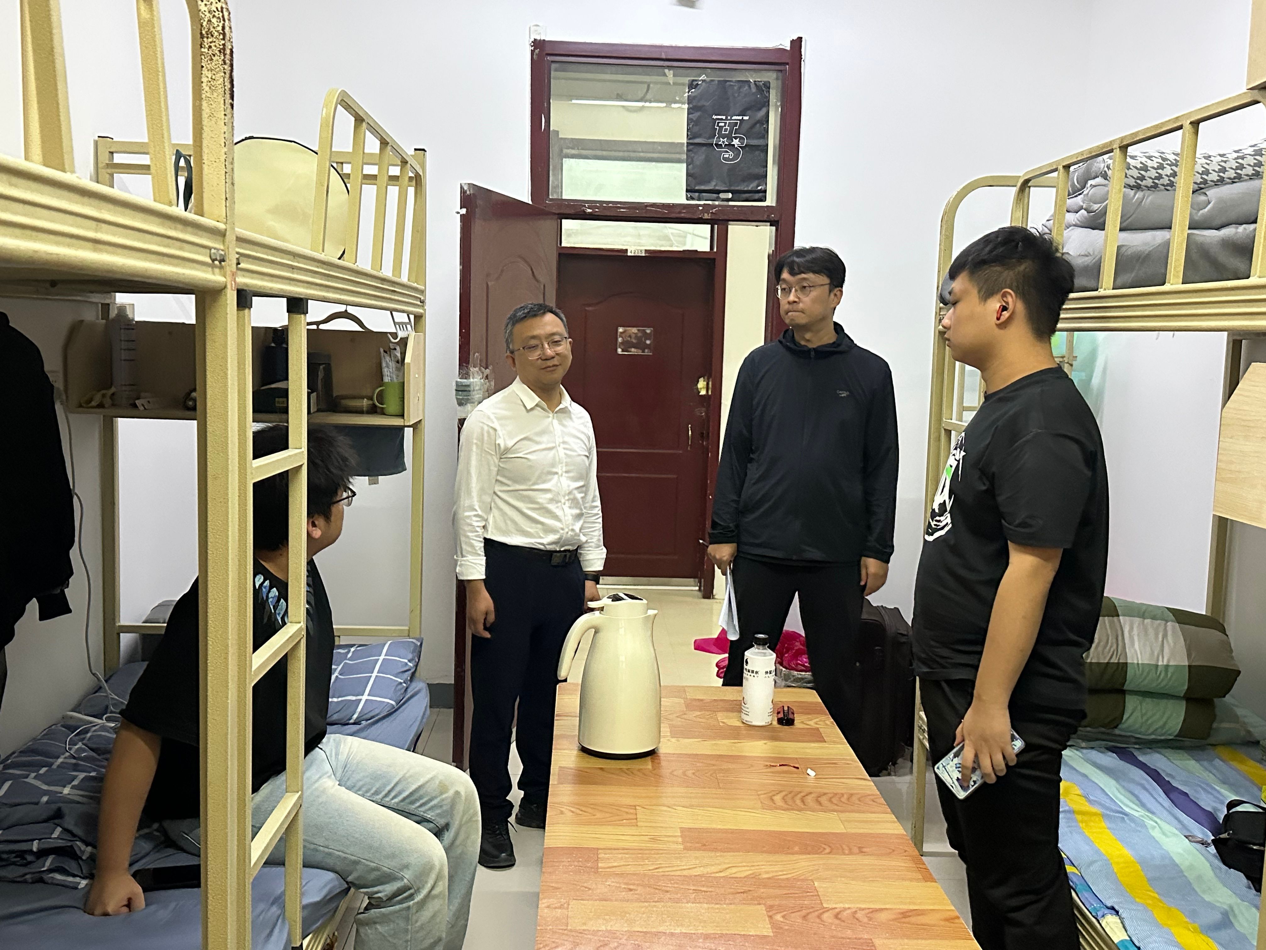 下午6时许,周小勇一行深入学生宿舍,亲切看望刚刚入住的2025级新生。学院领导细致询问同学们的入住感受、家乡背景及入学初体验,耐心解答大家提出的问题,并嘱咐新生要尽快适应新环境、树立新目标,团结室友、互帮互助,共同营造温馨积极的生活氛围。