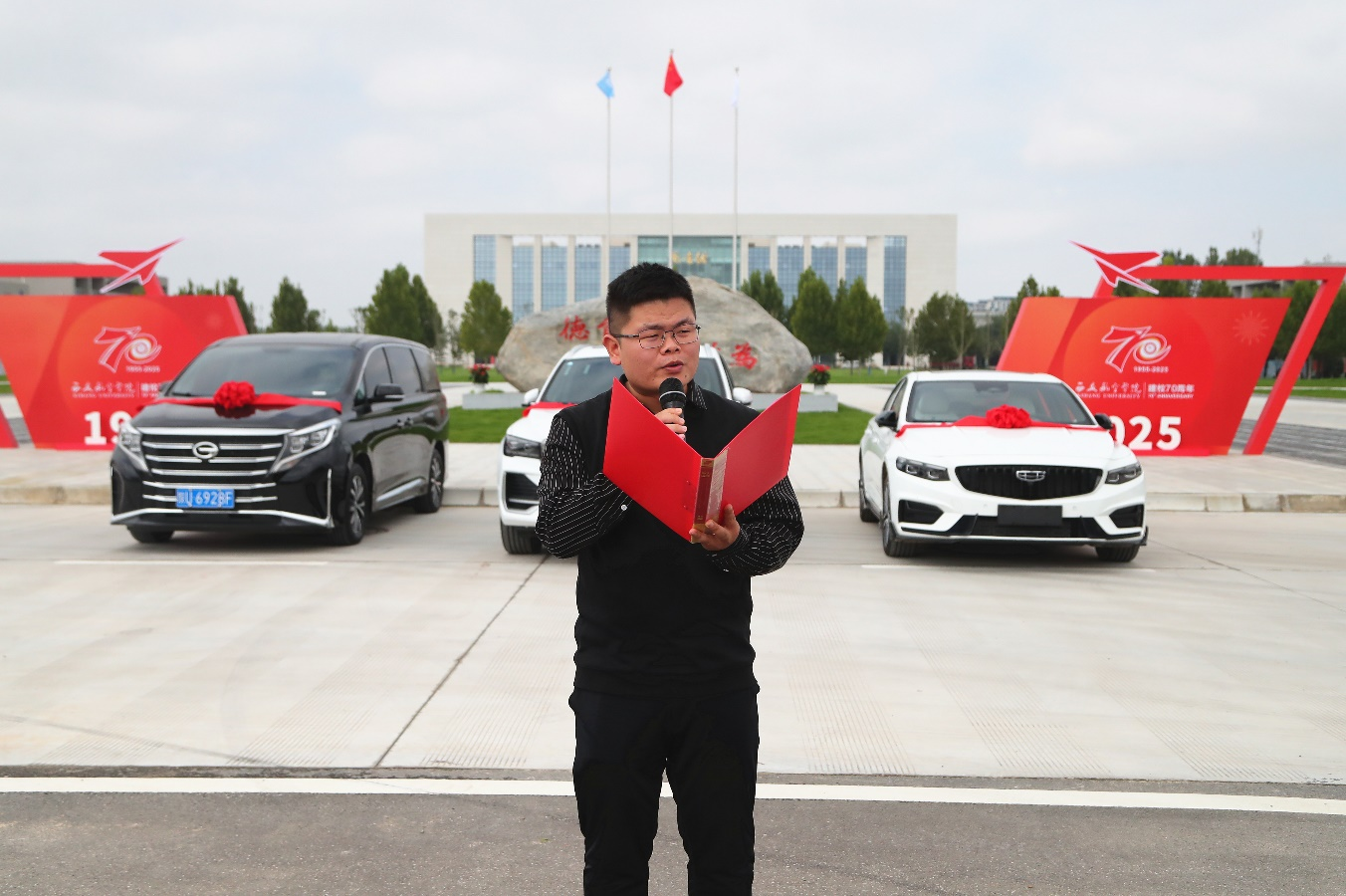 学校2018级校友、吉利汽车集团校企合作西北区域经理王凯代表捐赠企业发言。他表示,十分荣幸见证吉利汽车与母校深入合作。吉利汽车始终将人才视为核心竞争力,未来将继续加大投入,打造“学练结合、岗课融通”的培养模式。他向在场学子寄语,希望大家珍惜实践机会,将理论知识转化为实干能力,未来成长为懂理论、精技能、善创新的行业栋梁。