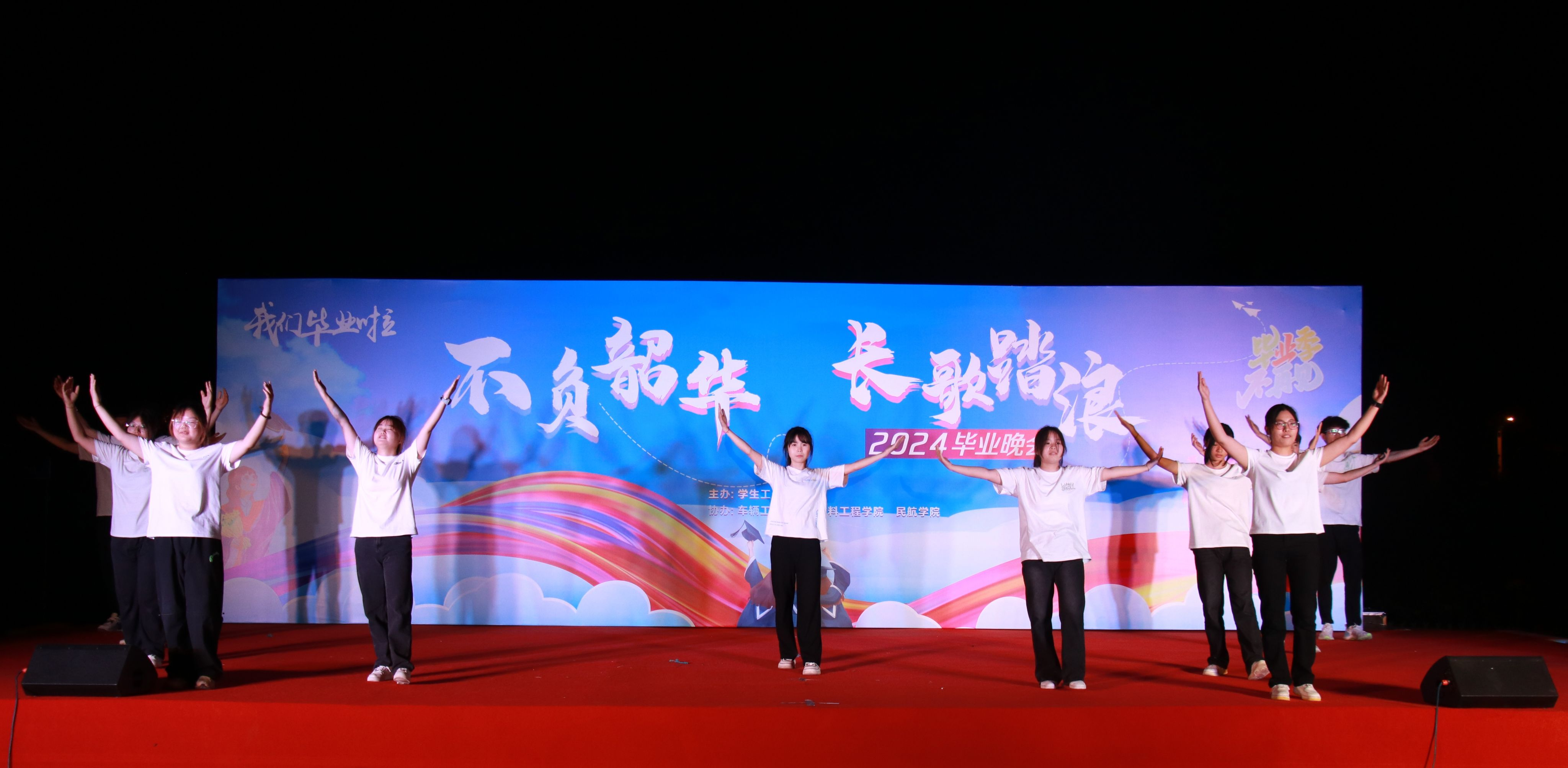 学院坚持美育与德育、智育、体育、劳育协同融合,充分挖掘多元美育资源,从心灵美、礼乐美、语言美到科学美、秩序美、勤劳美,再到艺术美的全方位覆盖,让学生在潜移默化中接受美的熏陶、提升美的品味。为搭建美育实践平台,学院常态化开展新生才艺展示、歌手大赛、“他(她)来听我演唱会”、毕业季师生联谊晚会等特色活动,不仅为学生提供了展示自我的舞台,更拉近了师生、同窗之间的距离,营造了融洽和谐的校园氛围。其中,2023 年 “青春不散场,携手共远航” 毕业晚会凭借高端设备、宽阔场地与精彩节目,成为全校师生难忘的视觉盛宴;2024 年联合多学院承办的 “不负韶华 长歌踏浪” 毕业季师生联谊晚会,在汽车实训场打造出兼具工业气息与艺术魅力的独特场景,彰显了学科特色与美育的创新融合。